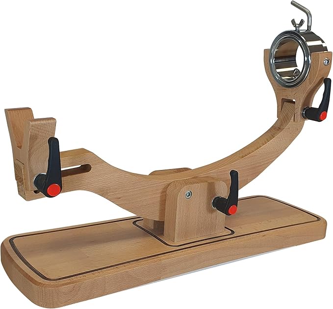 Este jamonero con cabezal giratorio ajustable incluye tornillos y está diseñado para facilitar un corte horizontal cómodo y preciso. Su sistema permite ajustar la posición del brazo del cabezal para adaptarlo tanto a paletillas como a jamones más grandes, optimizando la sujeción y el manejo durante el corte.