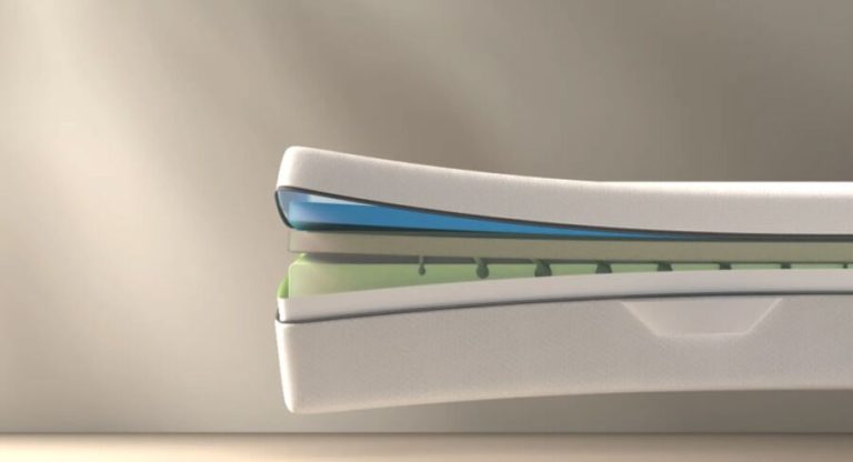 - Espuma viscoelástica: La segunda capa del colchón es de espuma viscoelástica de alta densidad, que refuerza la adaptabilidad de la capa anterior y distribuye el peso de forma uniforme. Esta capa también contribuye a mantener la columna vertebral alineada y a evitar los puntos de tensión.
